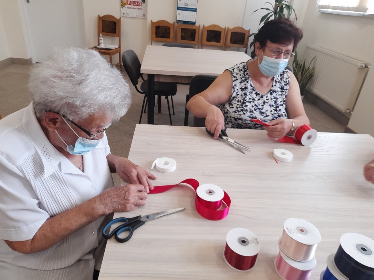 W miesiącu czerwcu 2021r Seniorzy Klubu Seniora+ w Bystrej przy współpracy z Ośrodkiem Kultury Gminy Gorlice oraz Fundacją „Między Sztuką a Terapią ”w ramach zadania „Art. But – prostolinijne przedstawienie rzeczywistości” uczestniczyli w warsztatach „ Malowanie na jedwabiu”, a także w stacjonarnych zajęciach artystycznyo – manualnych wykonując piękne bukiety kwiatowe – fontanny – z satynowej wstążki oraz w warsztatach wokalnych.