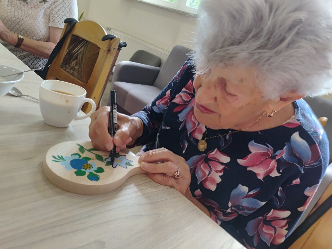 - ozdabialiśmy deseczkę malując farbami wzory kwiatowe